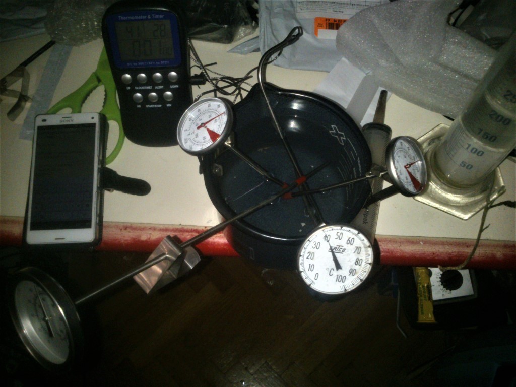 Stara slika dočarava koliko je interesnatan bio početak. Zašto su četiri termometra i sonda uronjeni u neki tekući medij? -vjerojatno kako bi se provjerila točnost u najvažnijem temperaturnom rasponu.